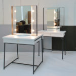 女優ライト付きスタジオミラーの別注製作。 両面鏡で両サイドから二人同時に使える対面式のドレッサーです。 右後ろが通常仕様のスタジオ女優ミラー。 左手前が両面鏡の対面スタジオ女優ミラー。 ショップ中央スペースでの利用などに […] -