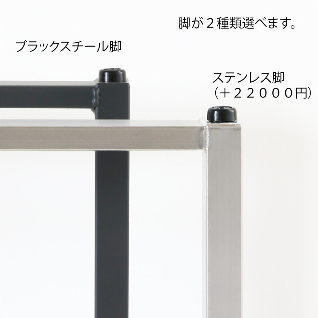 今回はブラックスチール脚とヘアラインステンレス脚のどちらでも選べます。