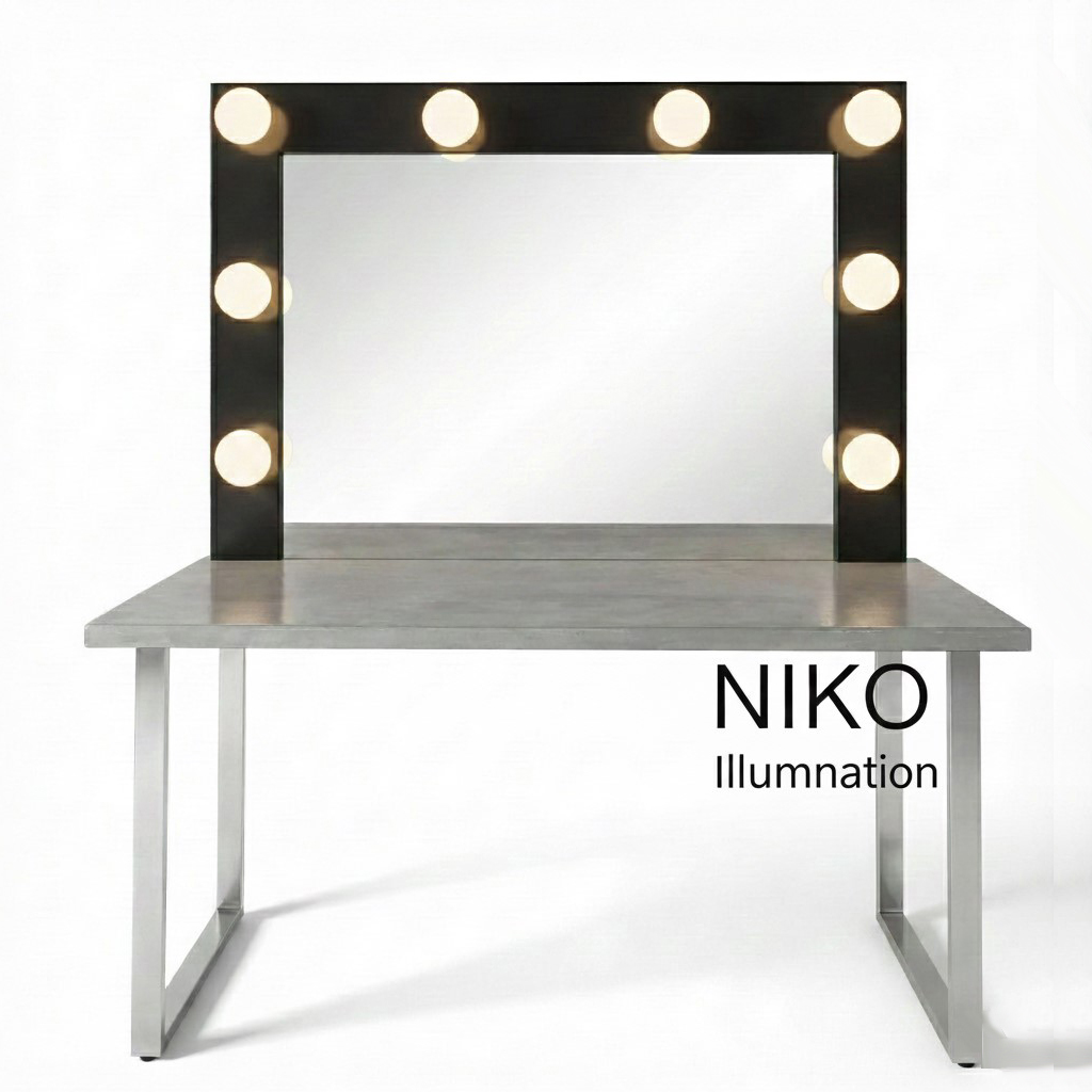 ドレッサースタジオ女優ミラー ニコ(NICO)イルミネーション サロンドレッサー美容室セット面 ライト付き