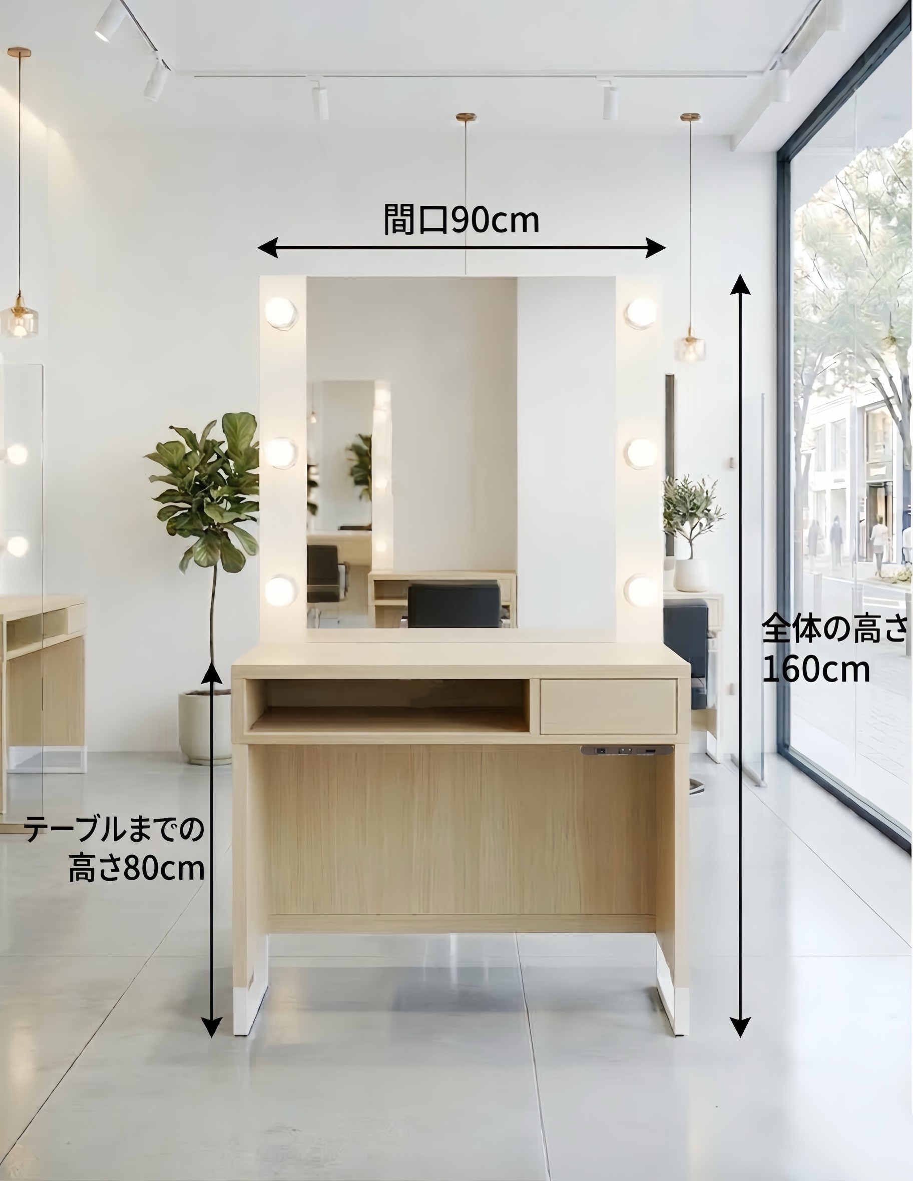 1面鏡, LEDミラー, じょゆどれ., シンプル, セット面, 女優ドレッサー, 幅90~99cm