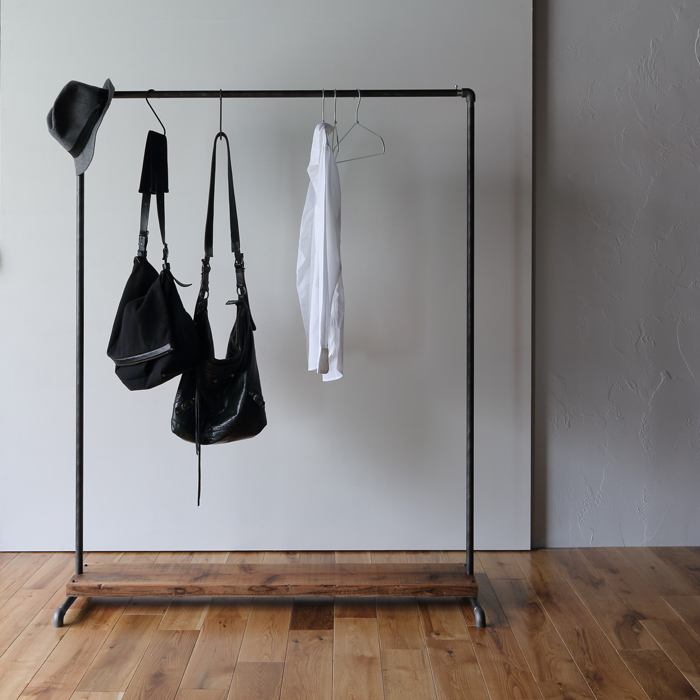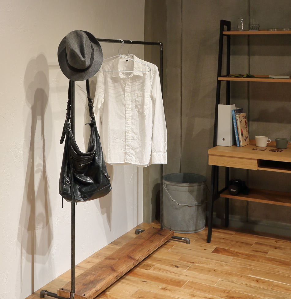 SG管を使ったコートハンガーは、お客様のコートやジャケットなど重い物でも十分耐えれるオーバースペックな強度のコートハンガーです。美容院やアパレルのセレクトショップなどでもお使いいただいています。