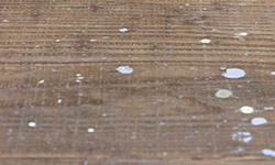 材料は高圧洗浄機で洗った後、ワイヤブラシで木目の中の汚れを落とし、さらに表面をサンドペーパーで削ることで、
