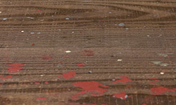 現場で使われていた材料のため、ペンキやサビあとキズがあります。あえてその状態を表現することにより、