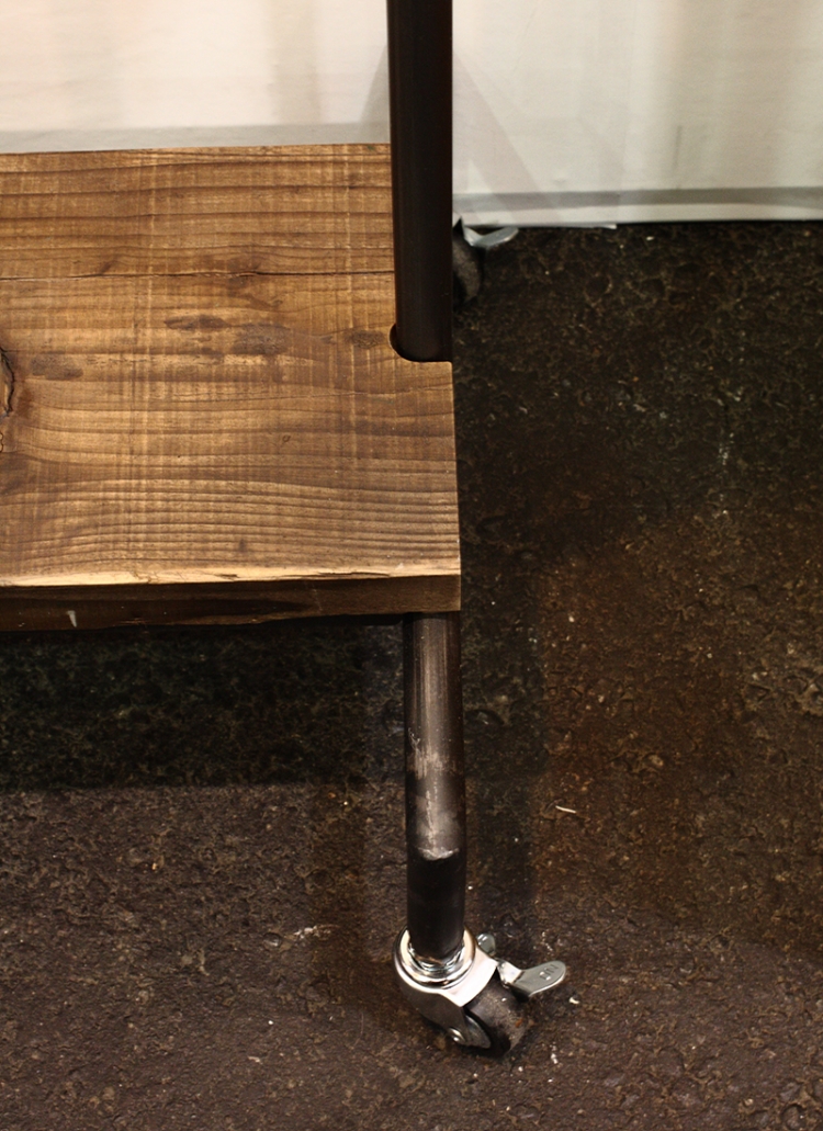 現場で使われていた材料のため、ペンキやサビあとキズがあります。あえてその状態を表現することにより、